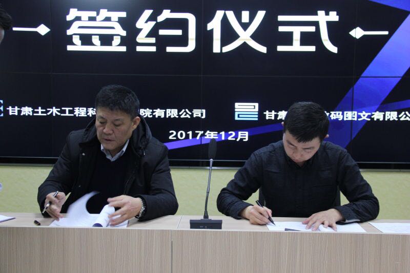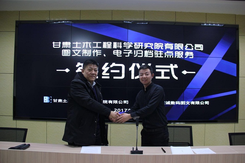 2017年12月19日鄭建軍副院長與甘肅建誠數(shù)碼圖文有限公司負責人在我公司學術報告會議廳共同簽署了《圖文制作、電子歸檔駐點服務》合同。