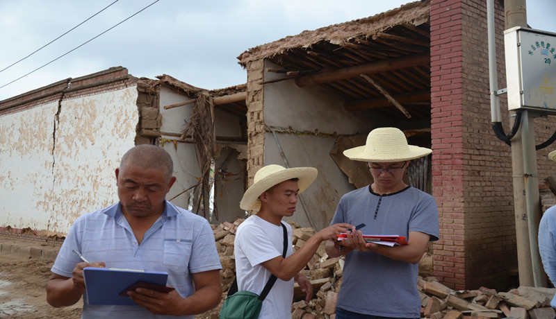 接到災情通報以后,我公司結(jié)構(gòu)所負責人陳廷乾同志帶領(lǐng)技術(shù)人員在第一時間奔赴該地,立即著手展開災后房屋應急鑒定工作。他們冒著洪水退去隨時可能引發(fā)疫情的危險,不辭辛勞,挨家挨戶進去排查,與村民們在受損的房屋內(nèi)、在沖毀的道路旁、在倒塌的門樓邊耐心詢問,詳細了解受災情況,獲得了第一手寶貴的數(shù)據(jù)信息。
