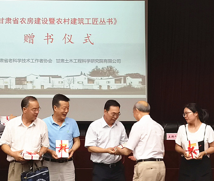 由我公司和甘肅省老科學(xué)技術(shù)工作者協(xié)會(huì)共同主編完成的《甘肅省農(nóng)房建設(shè)暨農(nóng)村建筑工匠叢書(shū)》(以下簡(jiǎn)稱《叢書(shū)》)于2019年7月正式出版發(fā)行,并于7月30日在蘭州舉行了贈(zèng)書(shū)儀式。甘肅省科協(xié)、省市發(fā)改、資源、環(huán)保、住建、工信、科技、墻改等政府部門的代表,以及甘肅省土木建筑協(xié)會(huì)、省建材行業(yè)協(xié)會(huì)等相關(guān)協(xié)會(huì)的代表共120多人參加了本次儀式。甘肅省老科學(xué)技術(shù)工作者協(xié)會(huì)會(huì)長(zhǎng)劉祖和和公司黨委書(shū)記、董事長(zhǎng)、總經(jīng)理董紅健為大家進(jìn)行現(xiàn)場(chǎng)贈(zèng)書(shū)。