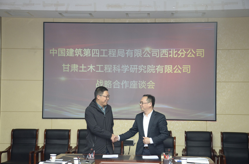 何江紅董事長表示中國建筑第四工程局有限公司西北公司在西北五省區(qū)、內(nèi)蒙古、山西等地區(qū),擔負“開拓西北事業(yè)、構(gòu)筑四局品牌”的重大使命,強勢開拓以西安、蘭州為中心的核心區(qū)域市場。依托中建集團及中建四局雄厚的資金、技術(shù)、人才資源和管理優(yōu)勢,大力發(fā)展基礎(chǔ)設(shè)施、高端房建、投資建造等領(lǐng)域,不斷增強誠信履約能力,努力展現(xiàn)新作為、彰顯新?lián)?、展示新形象。甘肅土木工程科學研究院有限公司作為西北地區(qū)土木工程建設(shè)領(lǐng)域?qū)I(yè)門類齊全、科研特色鮮明、資質(zhì)等級較高、技術(shù)優(yōu)勢領(lǐng)先、綜合實力雄厚的國有建筑科研高新技術(shù)企業(yè)。中國建筑第四工程局有限公司西北公司愿與甘肅土木工程科學研究院有限公司通過雙方更廣領(lǐng)域、更深層次和更高水平的合作,實現(xiàn)資源共享、優(yōu)勢互補、互利共贏,促進企業(yè)高質(zhì)量發(fā)展。