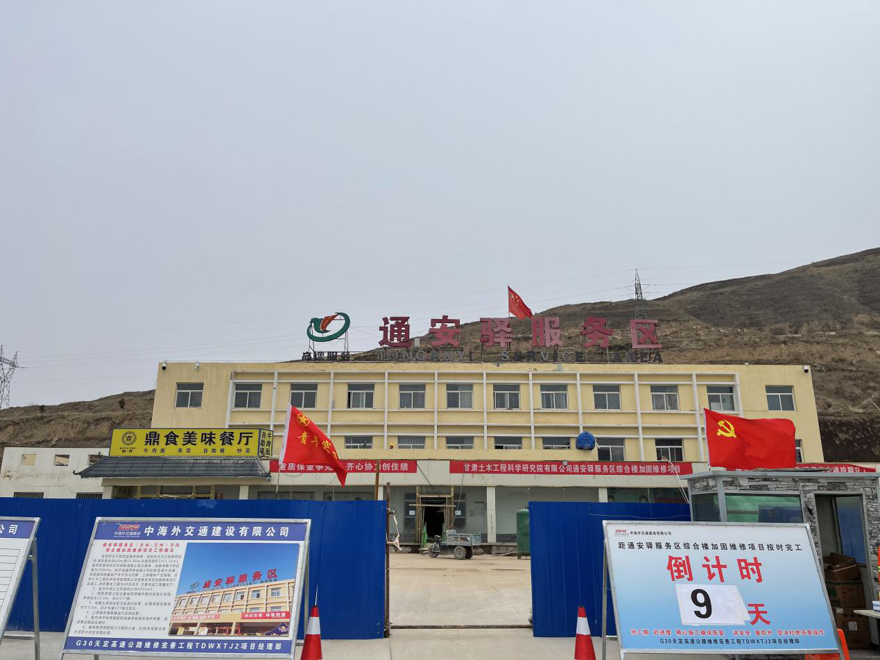通安驛服務(wù)區(qū)(天水-蘭州)方向綜合樓加固維修項目是省交通廳重要民生項目,自開工以來受到社會廣泛關(guān)注。項目建筑物結(jié)構(gòu)為三層框架結(jié)構(gòu),總建筑面積2311.11㎡,基礎(chǔ)采用鋼筋混凝土階式獨立基礎(chǔ),按照要求務(wù)必在四十天內(nèi)按期交付,時間緊、任務(wù)重、壓力大。項目負(fù)責(zé)人堅持黨建引領(lǐng)促生產(chǎn)、創(chuàng)先爭優(yōu)做表率,親自部署、靠前指揮,成立“青年突擊隊”,帶領(lǐng)施工人員克服困難、爭分奪秒,研判技術(shù)難題,綜合采用植筋、水鉆成孔、素混凝土引孔及注漿孔成孔、靜壓樁施工、鋼管柱及地基注漿、剛性板施工等施工工藝,積極搶抓工期、晝夜奮戰(zhàn)、全力沖刺,重壓保量爭先鋒,齊心協(xié)力創(chuàng)佳績。