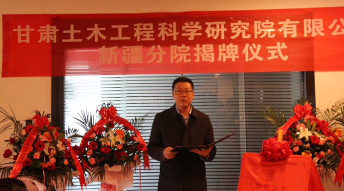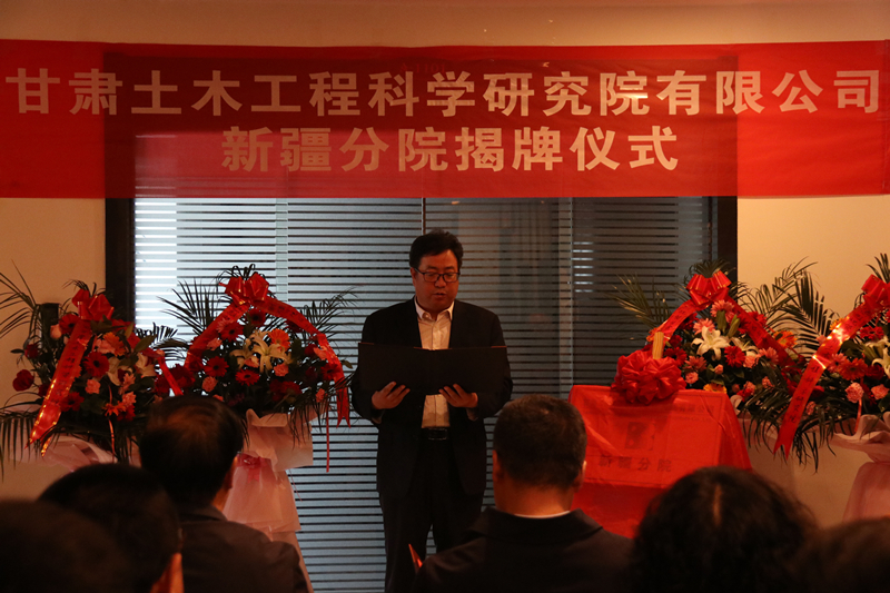 公司黨委副書記、董事、總經(jīng)理馬靈會出席揭牌儀式并代表公司致詞,黨委委員、副總經(jīng)理安貴倉主持揭牌儀式,經(jīng)營管理部、辦公室、施工技術研究所和新疆分院的負責人和部分工程技術人員代表參加儀式。新疆建筑設計研究院、烏魯木齊市建筑設計研究院、新疆四方建筑設計院、新疆建筑科學研究院、新疆建筑科學研究院檢測中心、新疆減隔震技術研究院等單位的領導及專家出席儀式,共同見證了公司新疆分院揭牌。