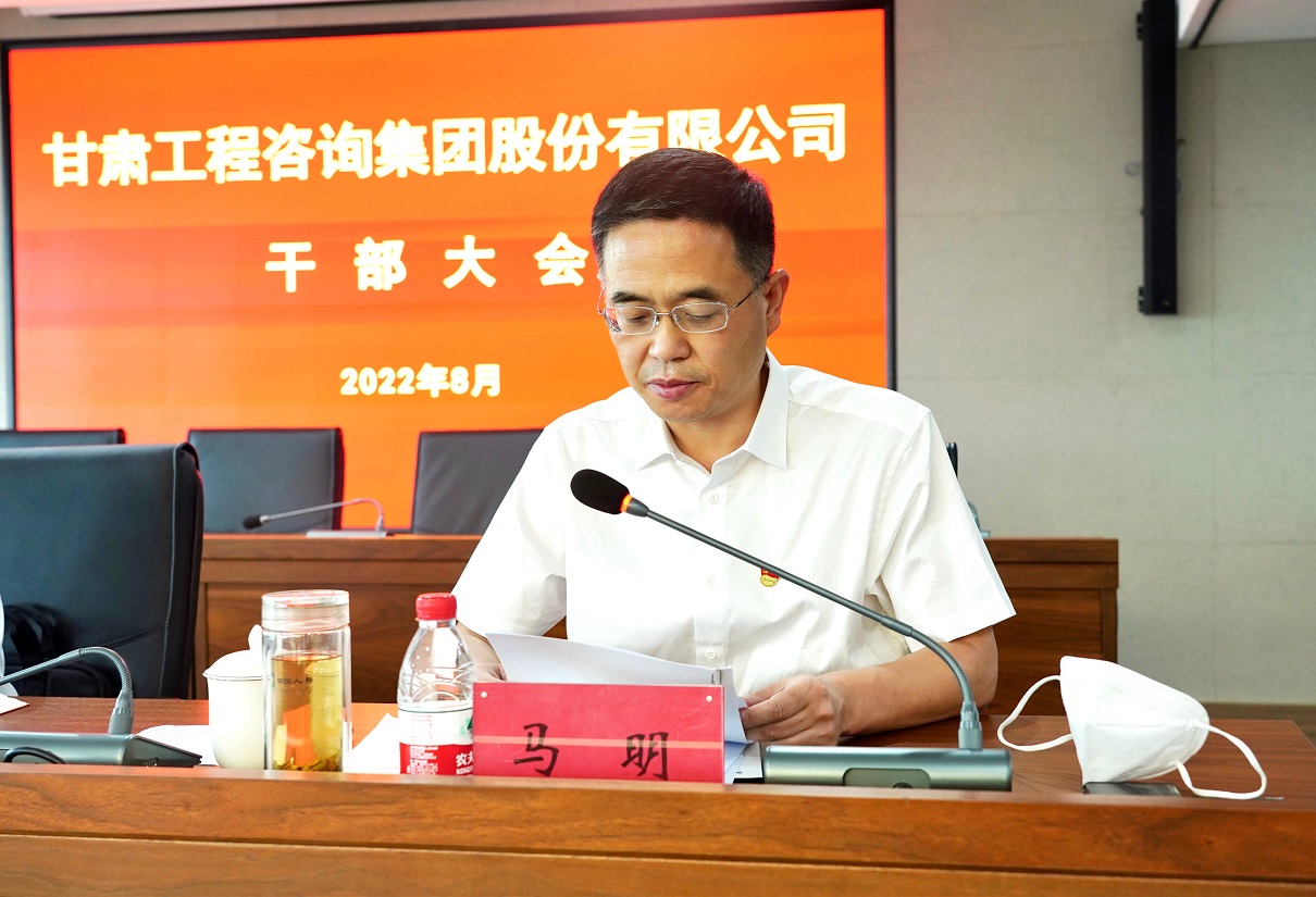 8月2日,甘肅工程咨詢集團(tuán)召開(kāi)干部大會(huì),宣布省委關(guān)于集團(tuán)黨委主要負(fù)責(zé)人任免決定:馬明同志任甘肅工程咨詢集團(tuán)股份有限公司黨委書(shū)記,宋忠慶同志不再擔(dān)任甘肅工程咨詢集團(tuán)股份有限公司黨委書(shū)記職務(wù)。