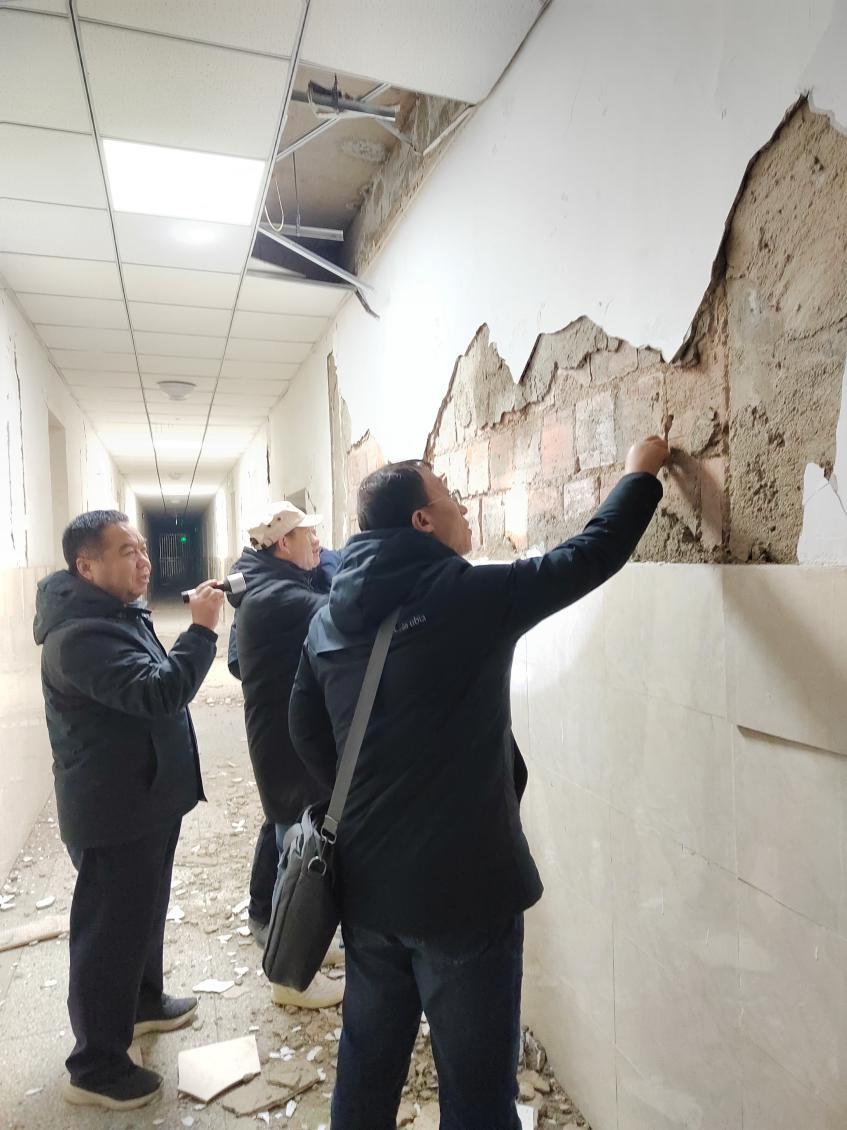 積石山縣海拔高、天氣冷、西風(fēng)烈。集團公司派出的技術(shù)專家發(fā)揮各自專業(yè)技術(shù)特長,到達災(zāi)區(qū)即開展受災(zāi)房屋安全排查工作。95個專家小組重點對災(zāi)區(qū)學(xué)校、醫(yī)院、污水處理廠、供熱站、福利院、賓館以及水利工程、居民住宅進行詳細排查,認真出具評估結(jié)果,確保讓群眾住到安全的房屋里。