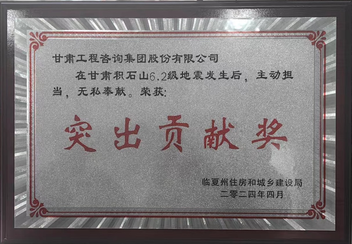 在甘肅積石山6.2級地震后,甘肅工程咨詢集團(tuán)主動(dòng)擔(dān)當(dāng),無私奉獻(xiàn),在應(yīng)急救援、災(zāi)后重建工作中表現(xiàn)突出,被臨夏州住房和城鄉(xiāng)建設(shè)局授予“突出貢獻(xiàn)獎(jiǎng)”。