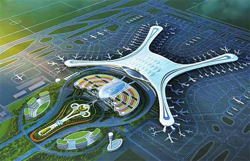 航站樓基礎(chǔ)工程中井樁數(shù)量高達(dá)10181根,鋼結(jié)構(gòu)由3.8萬個(gè)桿件拼裝而成,需設(shè)置50多個(gè)吊裝提升點(diǎn),最大提升高度18米。