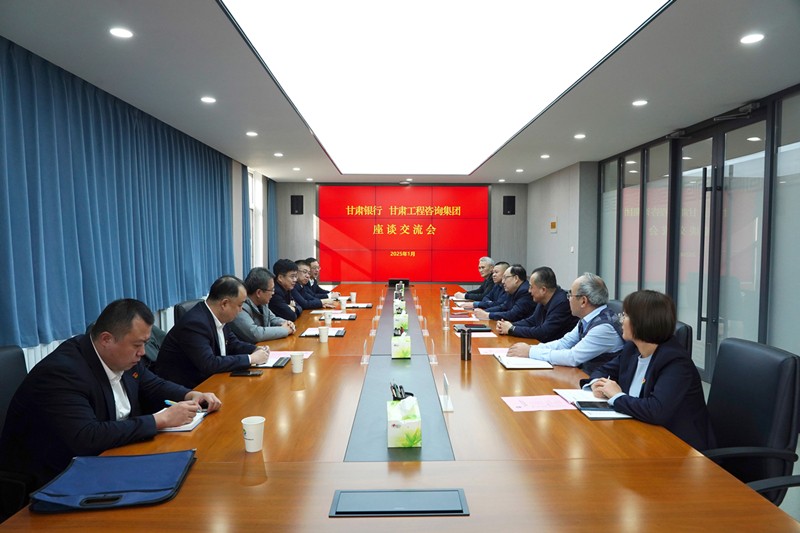 1月15日,甘肅工程咨詢(xún)集團(tuán)黨委書(shū)記、董事長(zhǎng)張佩峰與來(lái)訪的甘肅銀行黨委書(shū)記、董事長(zhǎng)劉青就深化銀企合作座談交流。甘肅銀行領(lǐng)導(dǎo)王錫真、杜晶,甘肅工程咨詢(xún)集團(tuán)領(lǐng)導(dǎo)成少平參加。