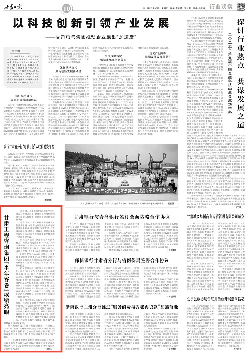 今年以來(lái),甘肅工程咨詢集團(tuán)堅(jiān)決貫徹落實(shí)省委、省政府決策部署及省政府國(guó)資委相關(guān)要求,錨定目標(biāo)、加壓奮進(jìn),全力以赴拼經(jīng)濟(jì)、穩(wěn)增長(zhǎng)、增效益,順利實(shí)現(xiàn)半年既定目標(biāo),在服務(wù)全省高質(zhì)量發(fā)展進(jìn)程中展現(xiàn)出新作為。