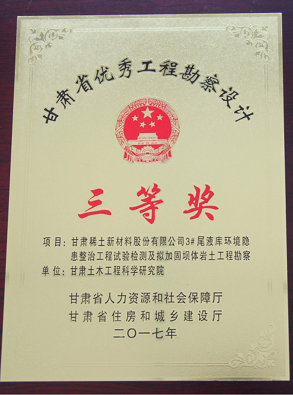 2.獲2017年度甘肅省優(yōu)秀工程勘察設(shè)計(jì)三等獎。